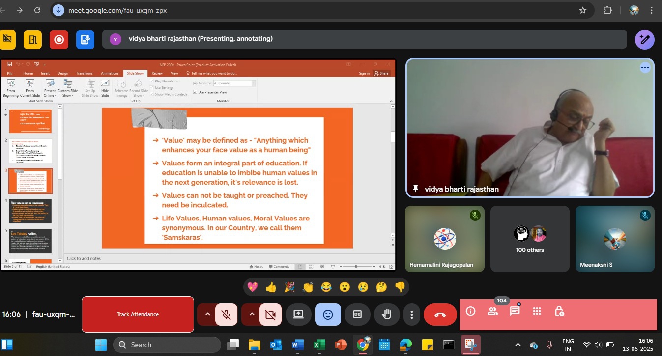 FDP on Inculcation of Values in Higher Education (9-14 June, 2025)